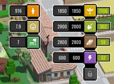 右上のパラメータではマークがあります。ハッキリとしたワードはないので推測ですが、左は人口、幸福度、公園の数。