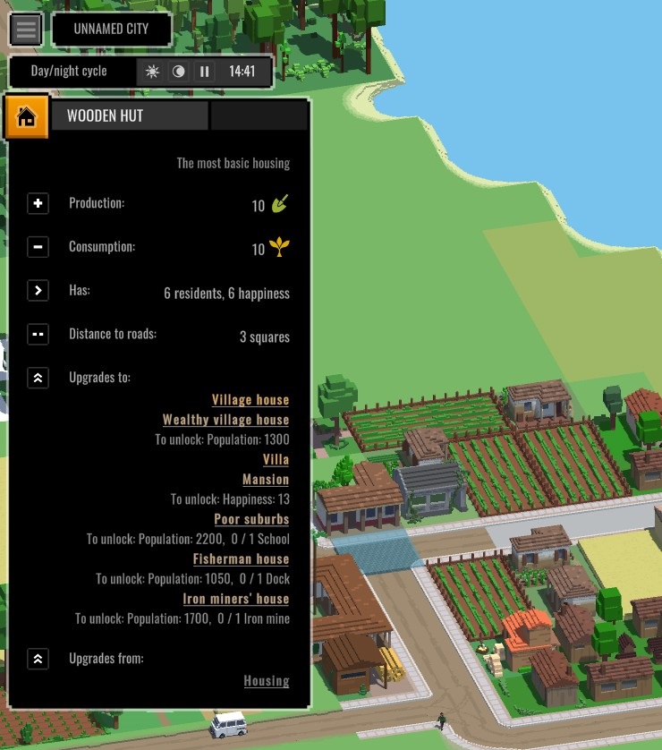 家のアップグレードや施設のアップグレードをして街を発展させつつ建てれる建物をアンロックしていくのが楽いです。条件を満たしていない建物は建てれないけど、半透明になって建てる条件は見えるので目標ができていいです。